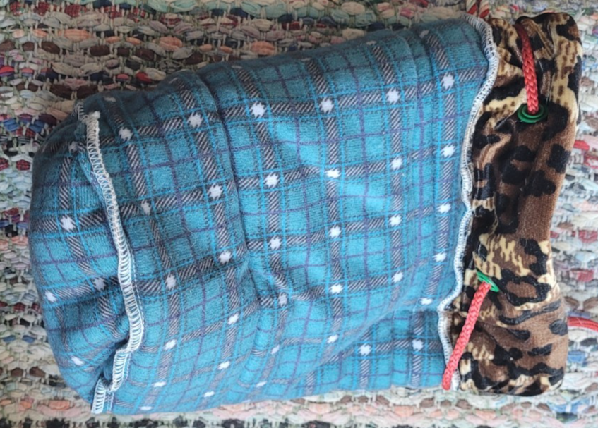 This purse is in good used condition. I'm not sure if it's handmade or factory made. As seen in the photos it is lined and has padding between lining and animal print. The closure is drawstring and works well. It mesures approximately: Height: 8 inches. Width: 8 inches.