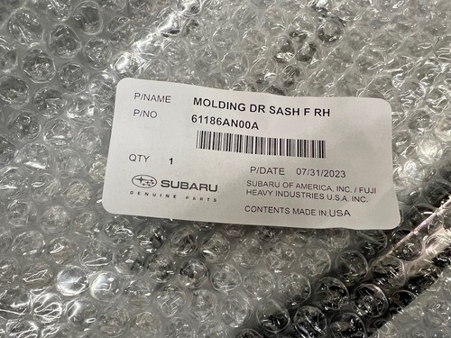 2020 2021 2022 2023 SUBARU LEGACY OUTBACK FRONT RIGHT WINDOW MOLDING 61186AN00A