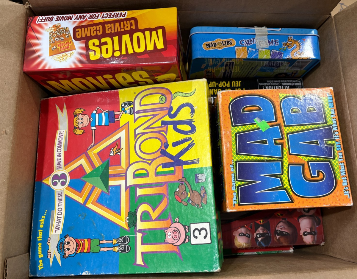 Description: Family/kids game night! Incredibles 2 Pop Up Game, Blokus, TriBond Kids, Mad Gab, Movies Trivia Game and Mad Libs Card Game