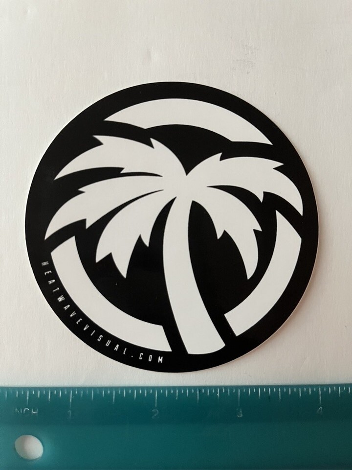 Authentic HEATWAVE Visual STICKER 3 1/2" round Palm logo Black & White Awesome!!