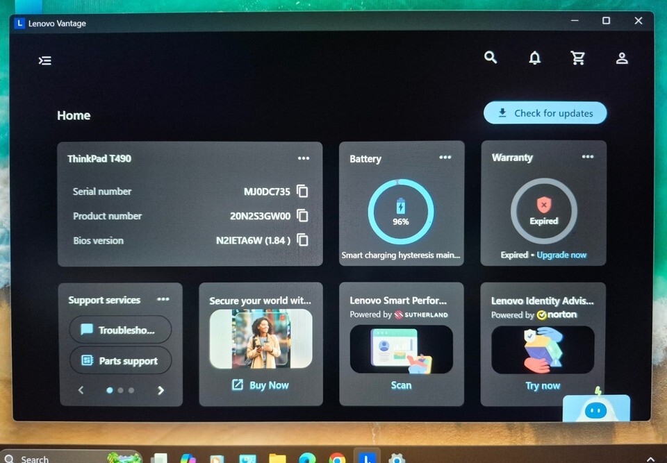 The Lenovo Vantage App is installed, was run and all Drivers, Firmware and Bios were updated