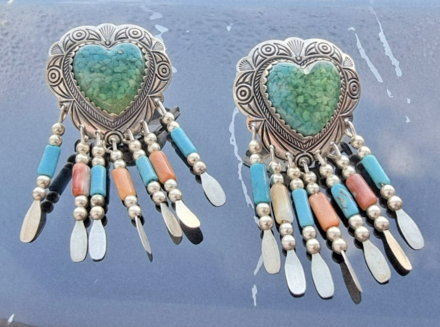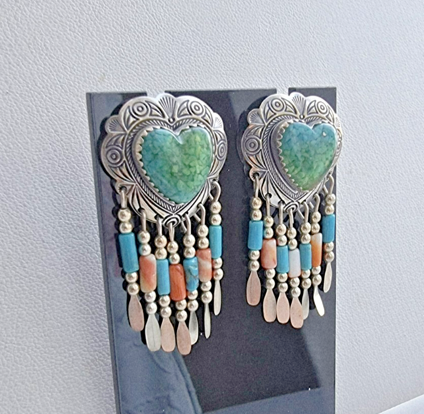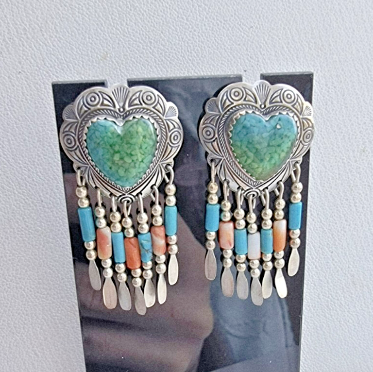These Quoc Turquoise Inc 925 sterling silver stud earrings feature malachite, turquoise, and coral stones, showcasing the traditional Native American craftsmanship. With a tribal affiliation from Albuquerque and a US culture influence, these earrings reflect the rich heritage and artistry of Native American jewelry. Made in the United States, these handmade pieces are a unique and collectible addition to any jewelry collection.