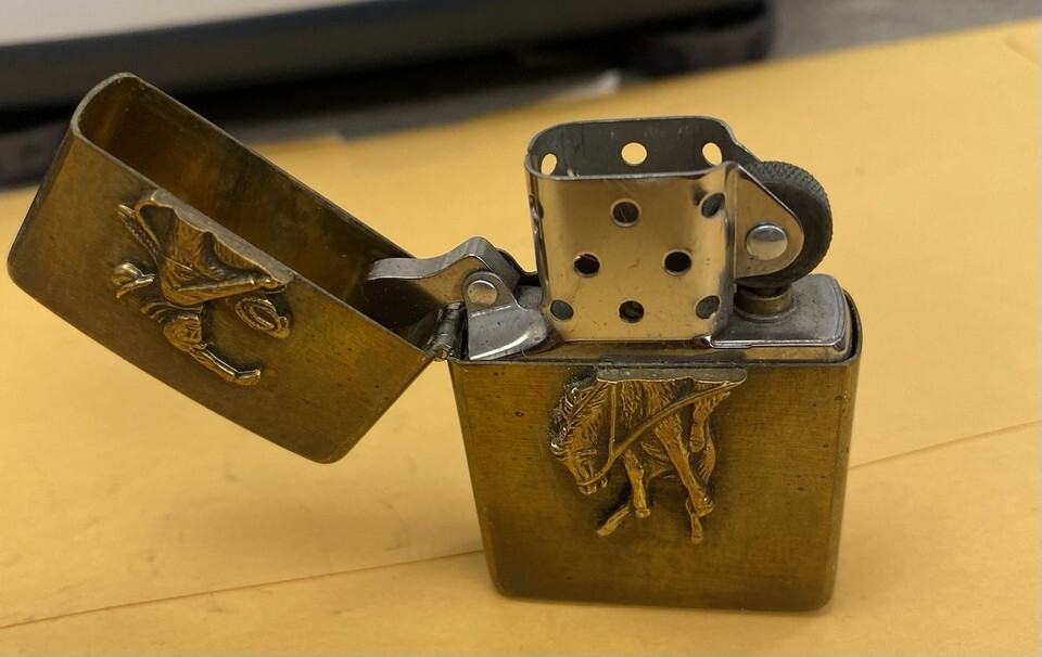 Vintage 1994 Marlboro Bucking Bronco Emblem Brass Zippo Lighter