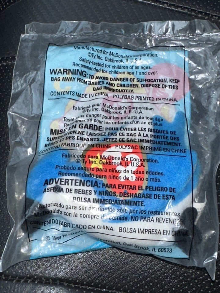 The product is a vintage Ty Teenie Beanie Baby Rocket #5 The Blue Jay toy released in 1999 as part of a McDonald's promotion. This collectible item is sealed, making it a rare find for fans of Ty toys and McDonald's memorabilia. The blue jay design adds a unique touch to any collection of fast food and cereal premiums.