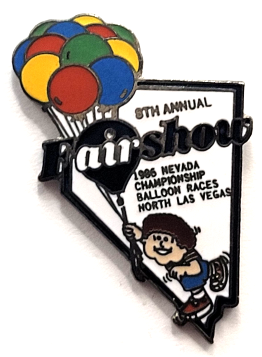 Fairshow North Las Vegas 1986 Nevada Map Hot Air Balloons Festival Event Pin VTG