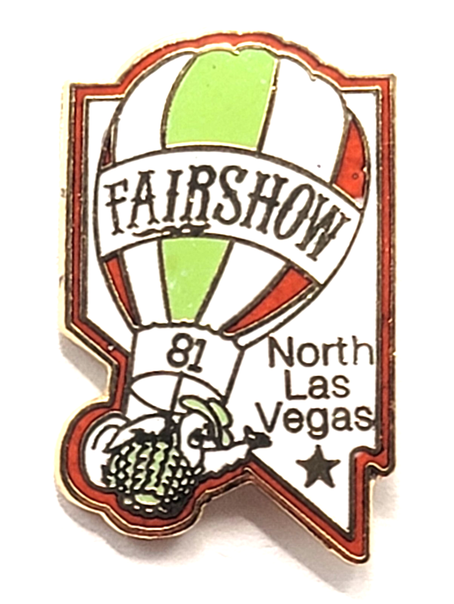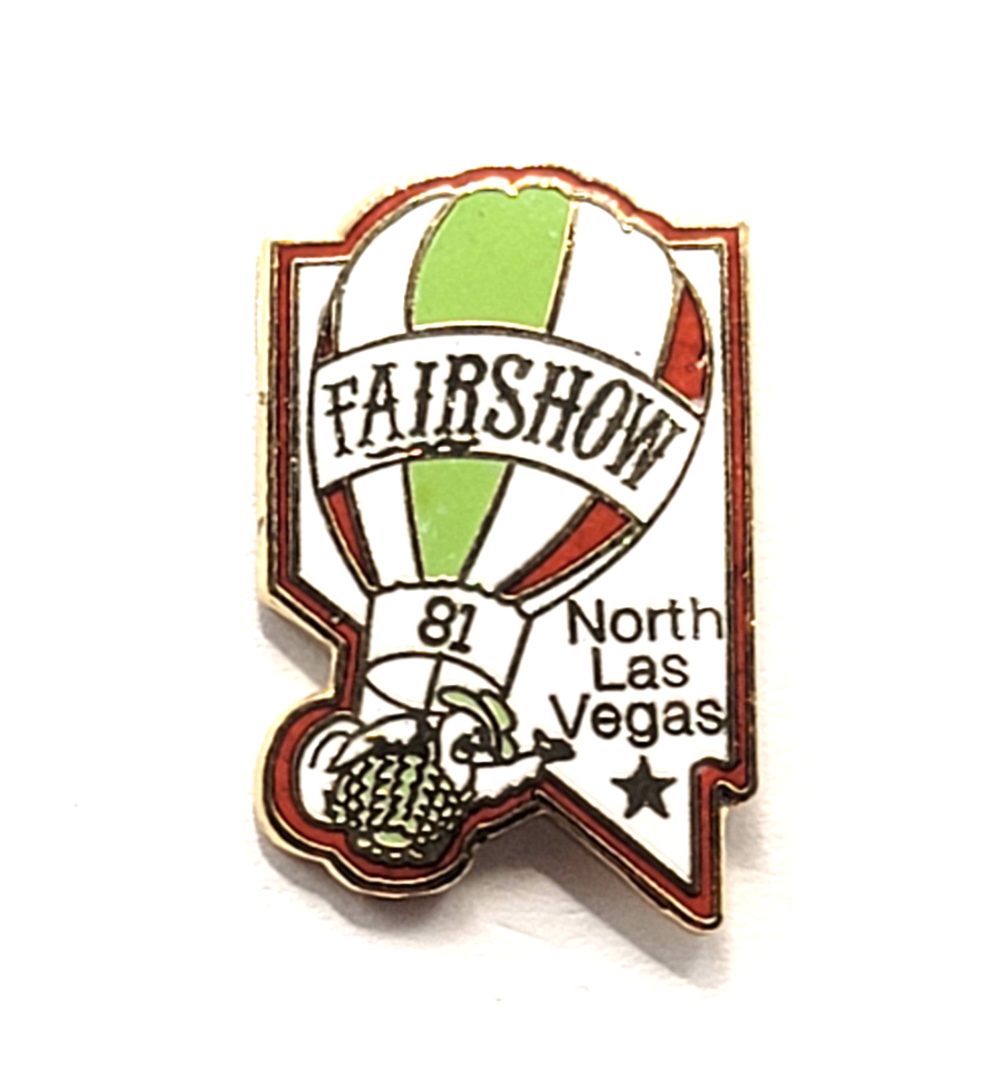 Fairshow North Las Vegas 1981 Nevada Map Hot Air Balloons Festival Event Pin VTG
