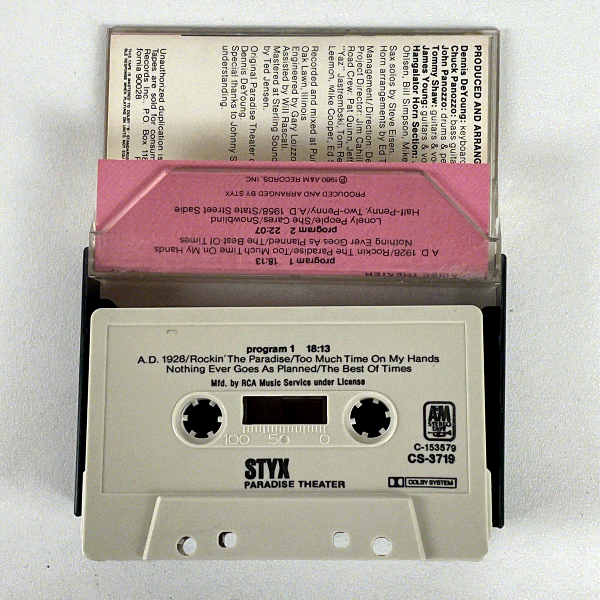 STYX Paradise Theater Cassette 1980 A&M Records RCA Music Service Edition