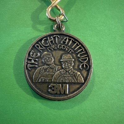 This item is a collectible vintage 3M promotional keychain featuring the slogan "THE RIGHT ATTITUDE".