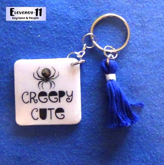 My keychains are made of a ceramic resin, and finished with designs on both front and rear, and then coated with a minimum of 2 coats of epoxy resin on each side. This makes them very strong, durable, and scratch and water resistant. Each keychain takes about 5-7 days to make and cure properly. They measure 1.5" x 1.5".