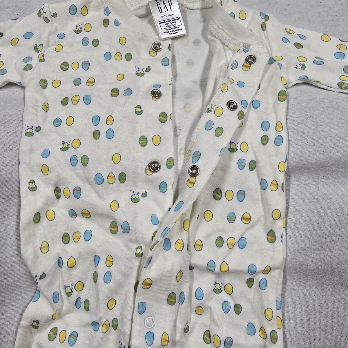 Keywords: Easter, Spring, Holiday, Baby Pajamas, Sleepwear, One Piece, Romper, Cotton, Pastel, Chicks, Eggs, Baby Gap, Snug Fit, Newborn, Infant, Retro, Vintage, Y2K