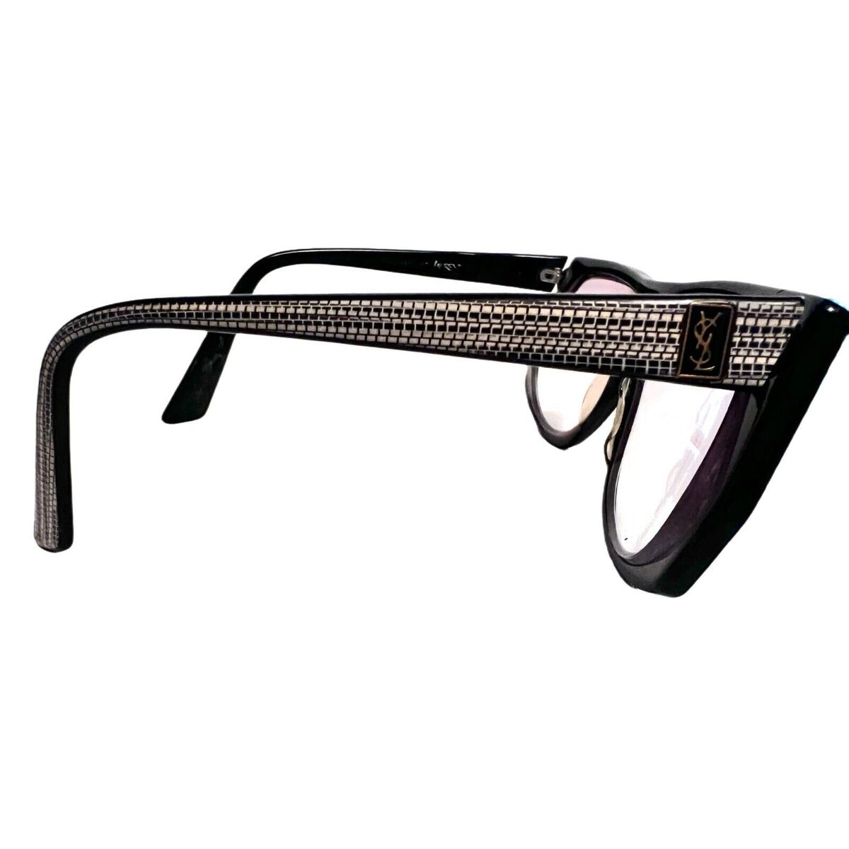 VTG 60s YSL Mosaic Eyeglass Frames Mod Sculptural Avant Garde Glossy Black