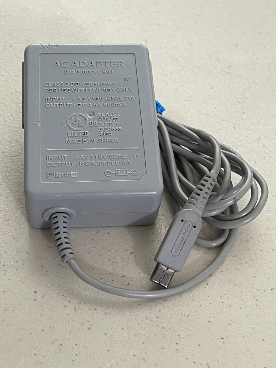 Official Nintendo AC adapter/charger for 120-volt outlets in USA