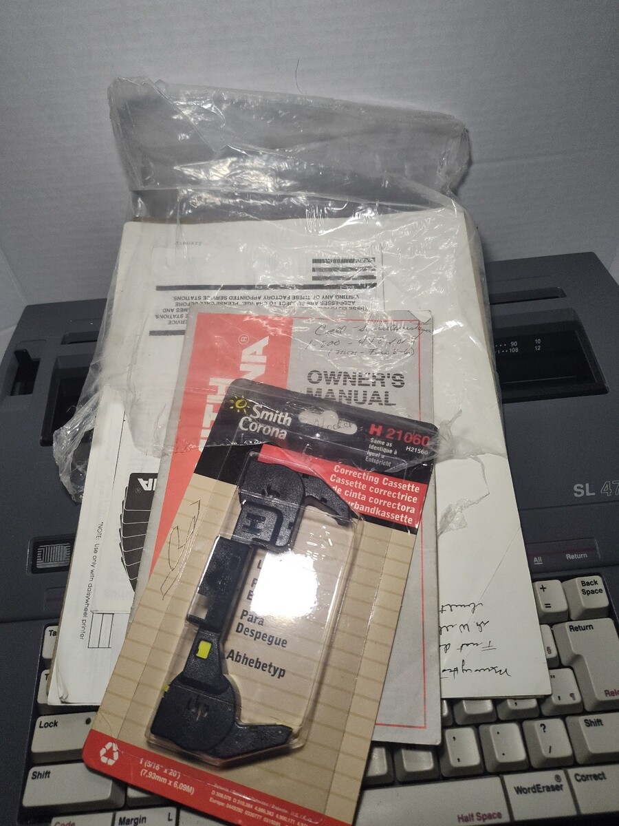 Up for sale is a Smith Corona Electric Portable Typewriter 5A SL 470 in excellent working condition. This typewriter comes with its original hard carrying cover and a bonus correction ribbon included. Perfect for typing enthusiasts, collectors, or anyone who appreciates vintage office equipment.