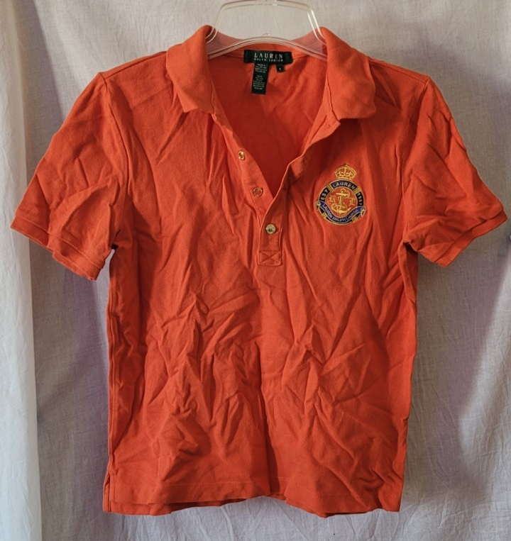 Youth Men's Lauren Ralph Lauren Shirt Orange Shortsleeve Collar Crest Anchor