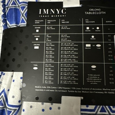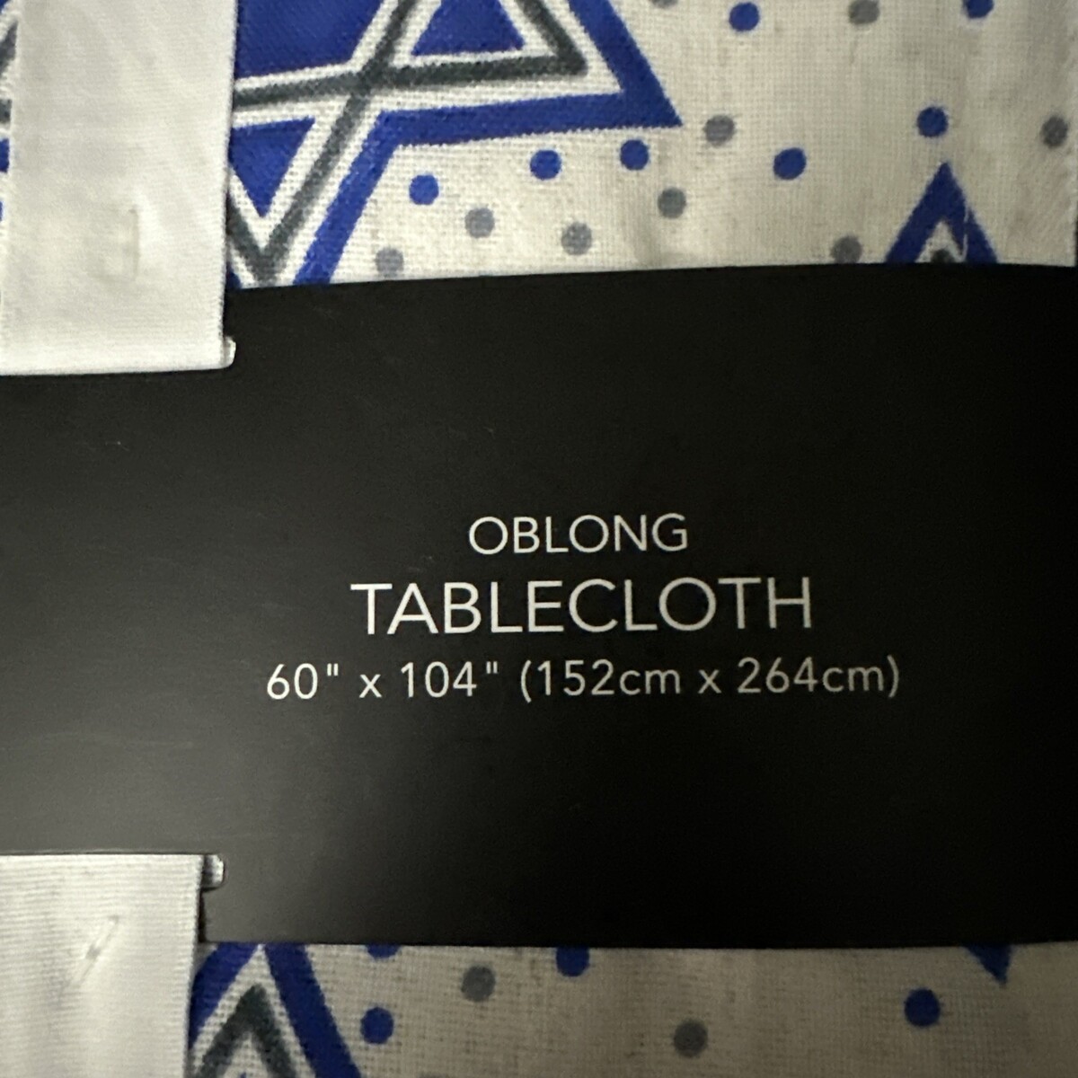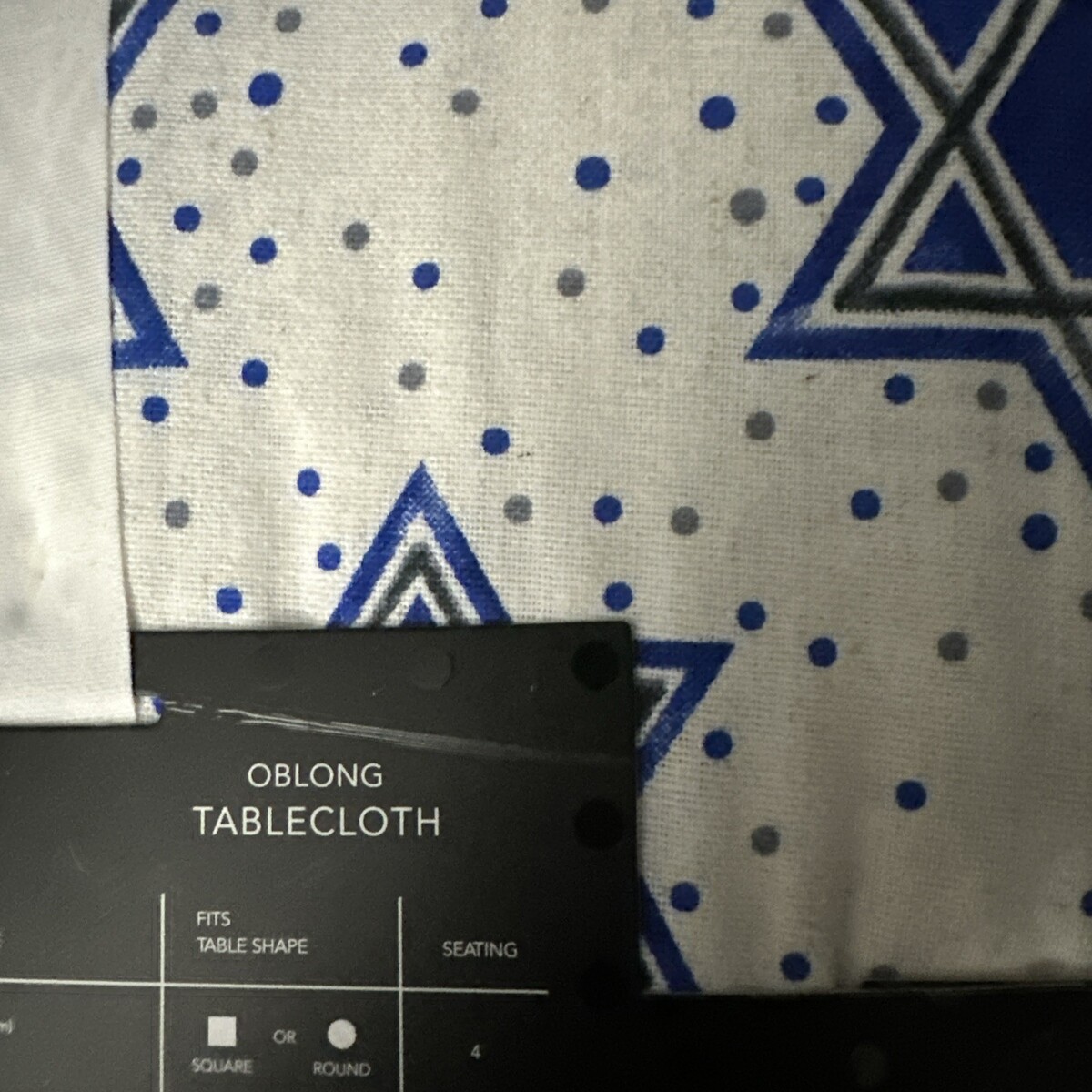 ISAAC MIZRAHI JEWISH STARS 1pc 60" x 104" HOLIDAY TABLECLOTH BLUE/WHITE ETC NIB