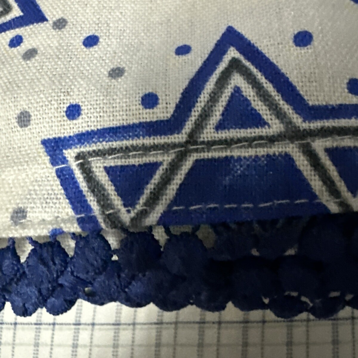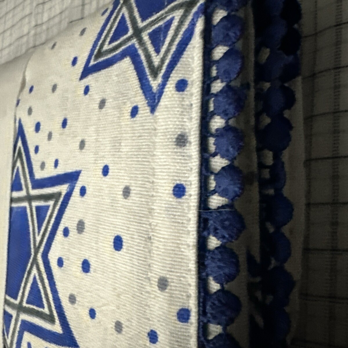 WHITE GROUND AND BLUE JEWISH STARS WITH A TOUCH OF GREY