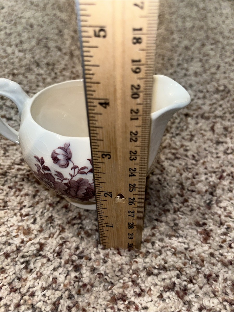 The product is a vintage Royal Staffordshire Charlotte creamer in a lavender purple color, featuring a floral pattern and a round shape. This small creamer is made of ceramic and porcelain and has a glossy finish. The creamer is from the 1950s and is an original piece from Royal Staffordshire Burslem England. It is designed in a Continental style and is perfect for all occasions. This collectible kitchen and home item is a beautiful addition to any dinnerware collection.
