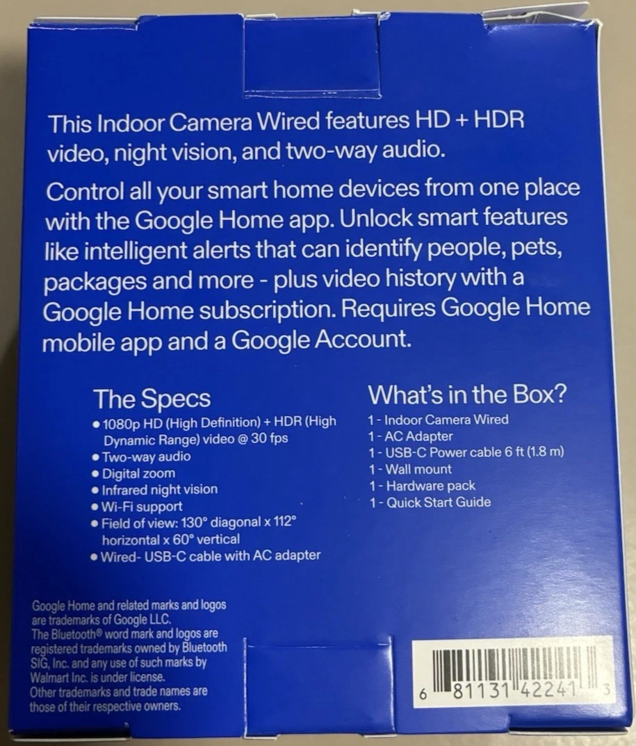 Intelligent home security, built with Google Home and Gemini. Search your video history, get detailed event descriptions and more with a Google Home Premium subscription.Know exactly what?s happening. The onn Indoor Camera Wired provides Intelligent Person Motion Alerts , and 3 hours of included event history, all with seamless control via the Google Home app at an affordable price. Google Home Premium with Gemini makes your smart home smarter, safer, and more effortless. It unlocks more home security features for the onn Indoor Camera Wired, with detailed alerts and easier ways to search your video history. And with one epic subscription, your smart home is what it?s meant to be.