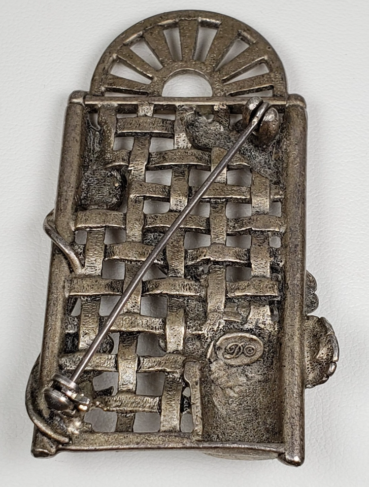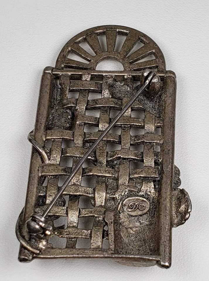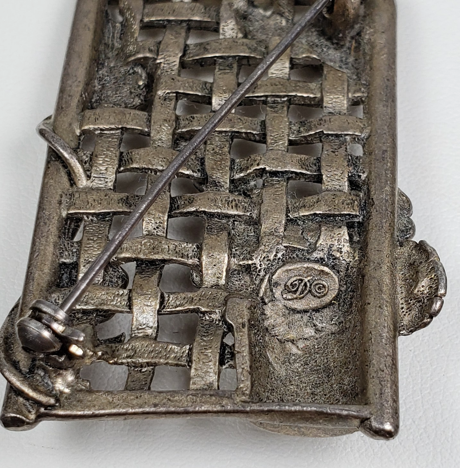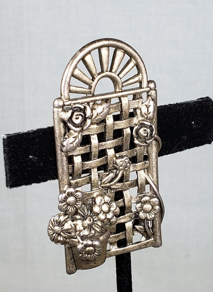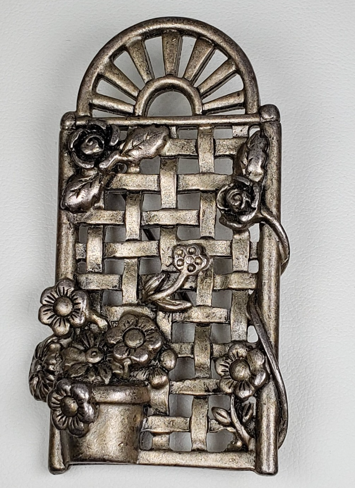 Vintage 1990's Dunecraft Flower Trellis Pewter Brooch