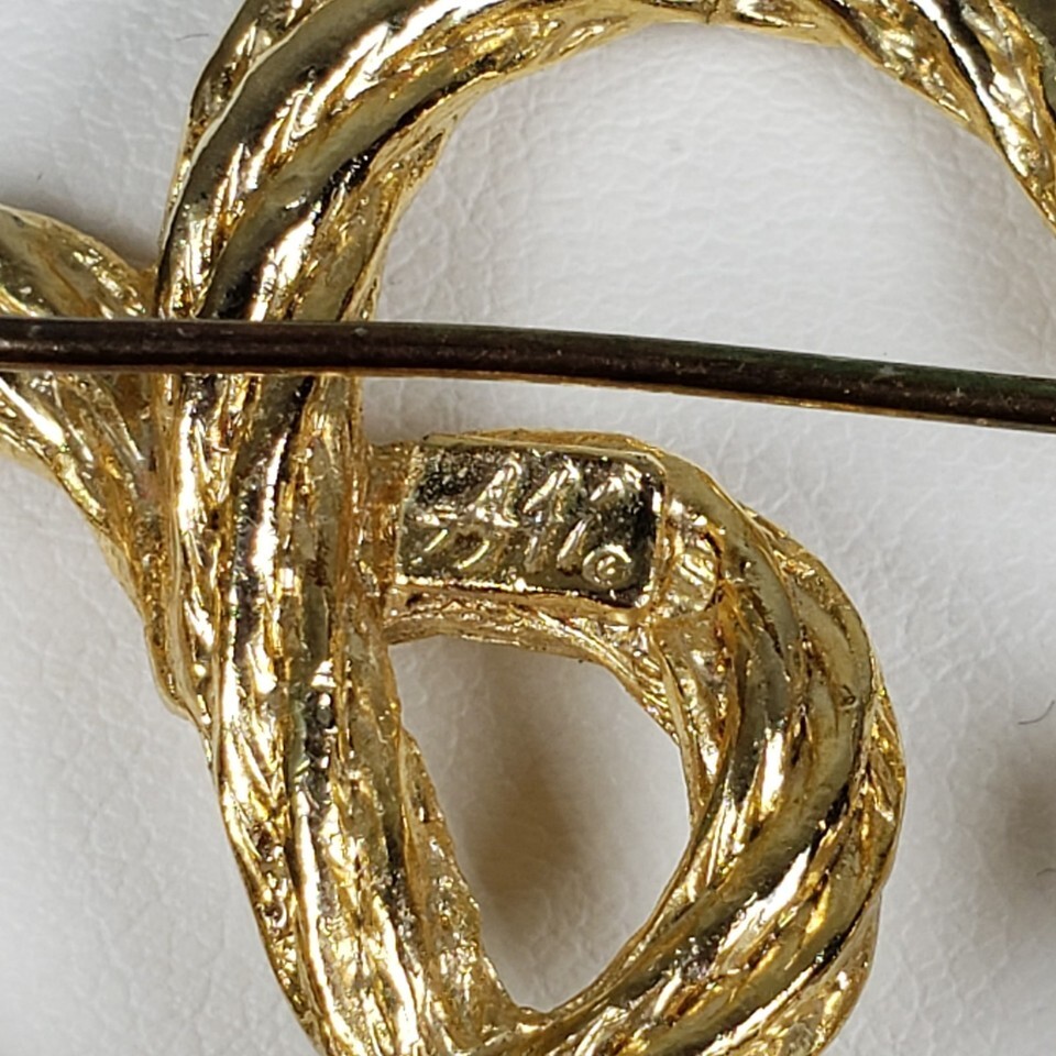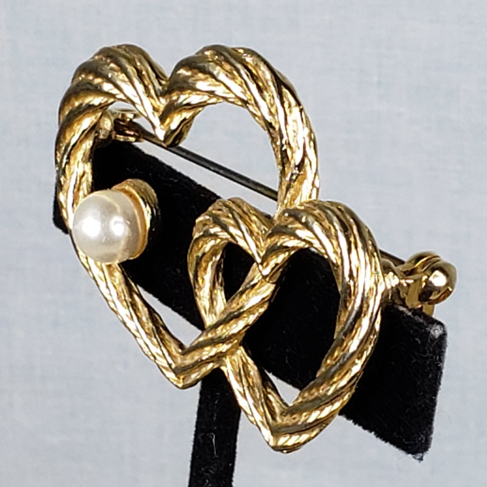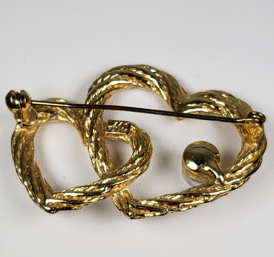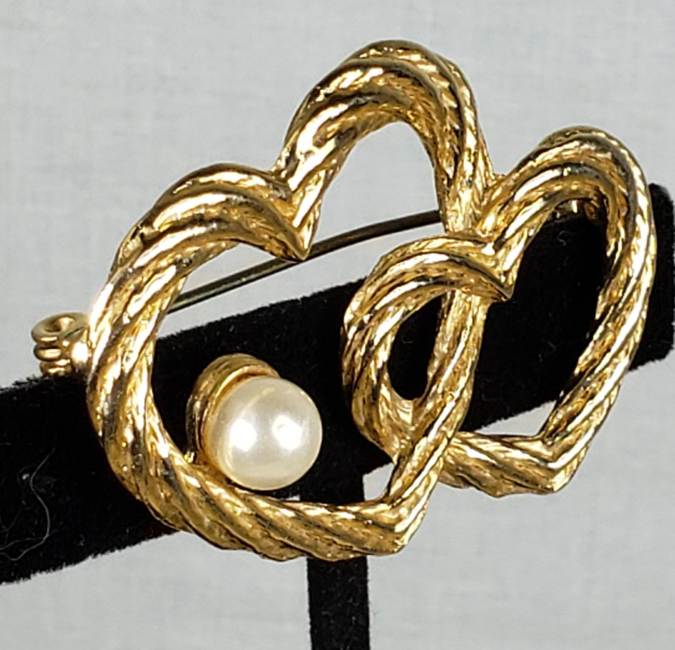 VTG 1980's AAI Gold Tone Double Interlocking Hearts w/Faux Pearl Marked Brooch
