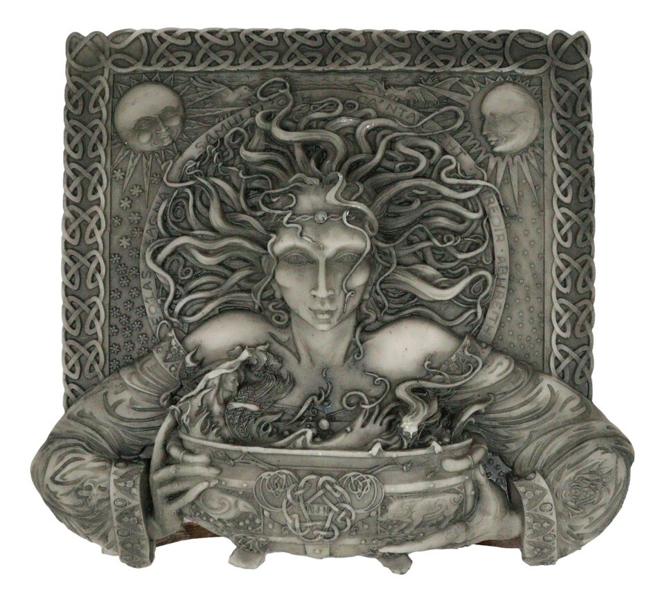 Ebros Celtic Goddess of Rebirth Cerridwen With Magical Potions Cauldron Wall Decor