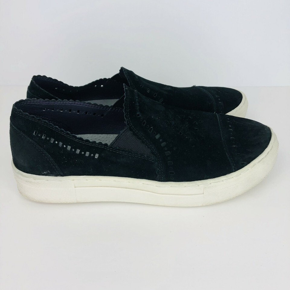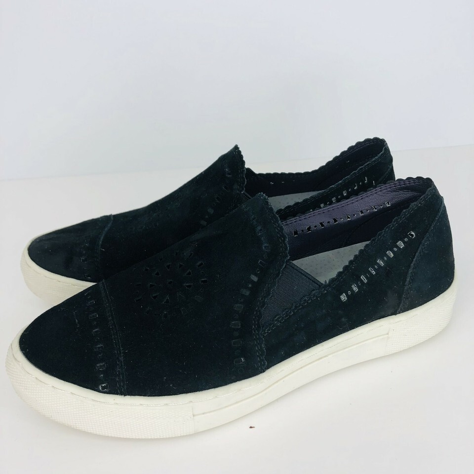Skechers Vapor Pike 7 Black Suede Leather Slip On Laser Cut Memory Foam Shoe