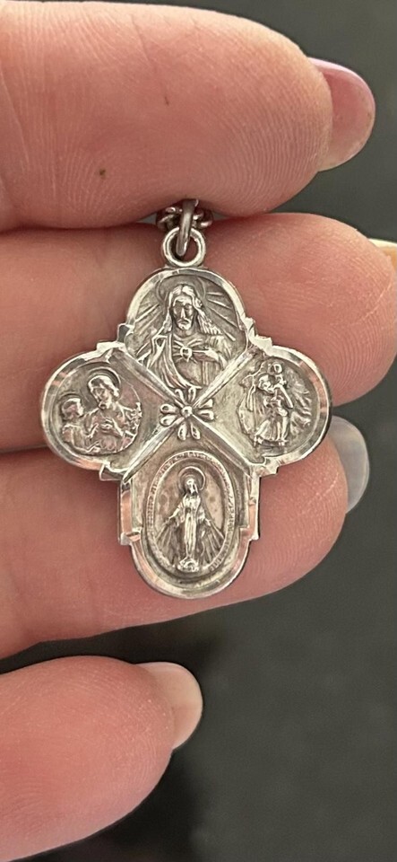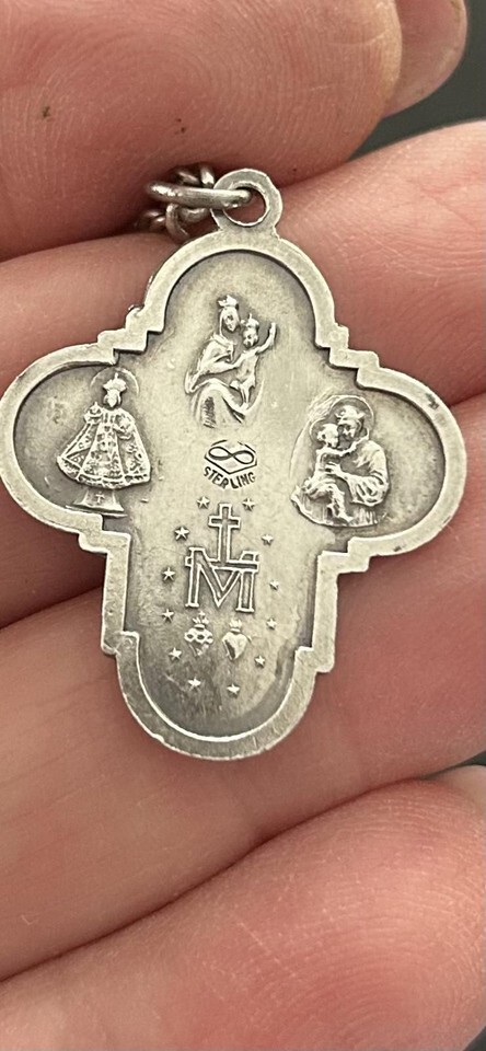 Vintage Religious Cross Pendant Necklace Sterling silver