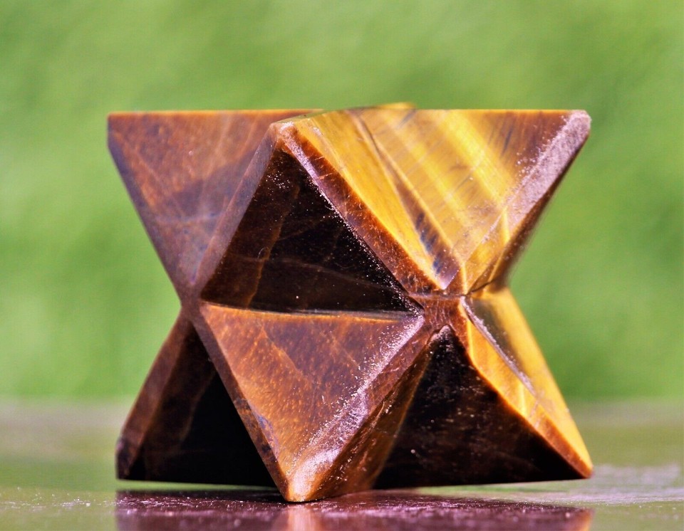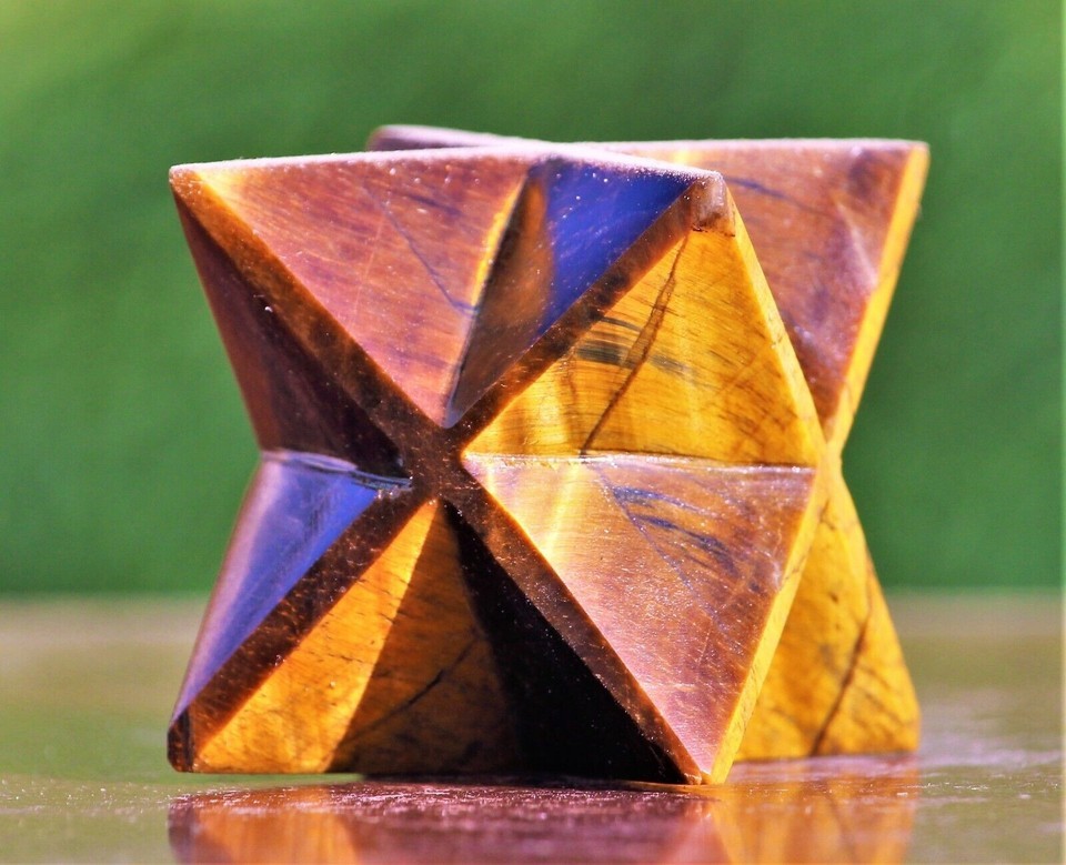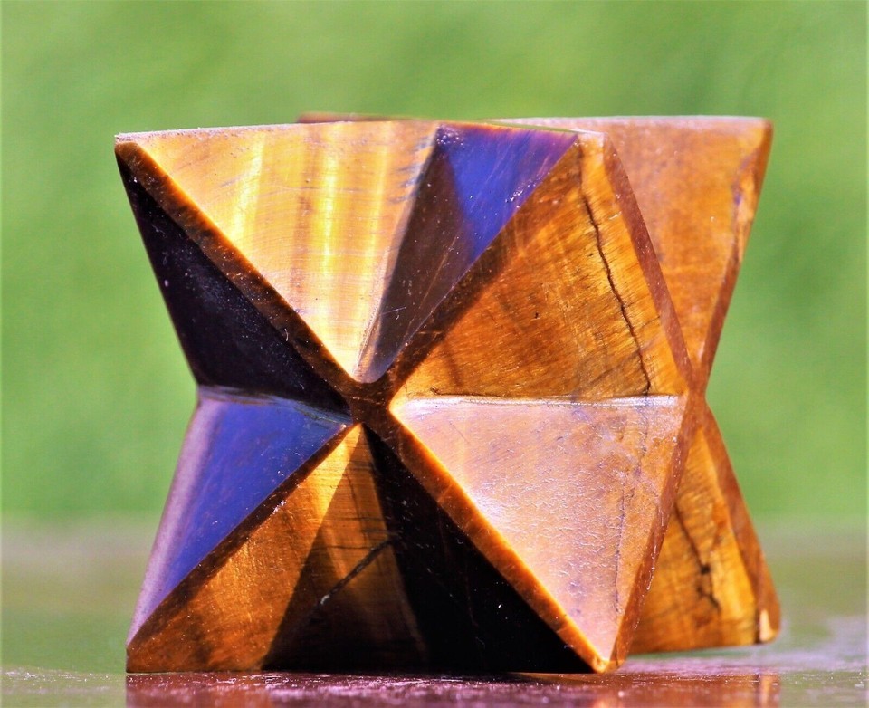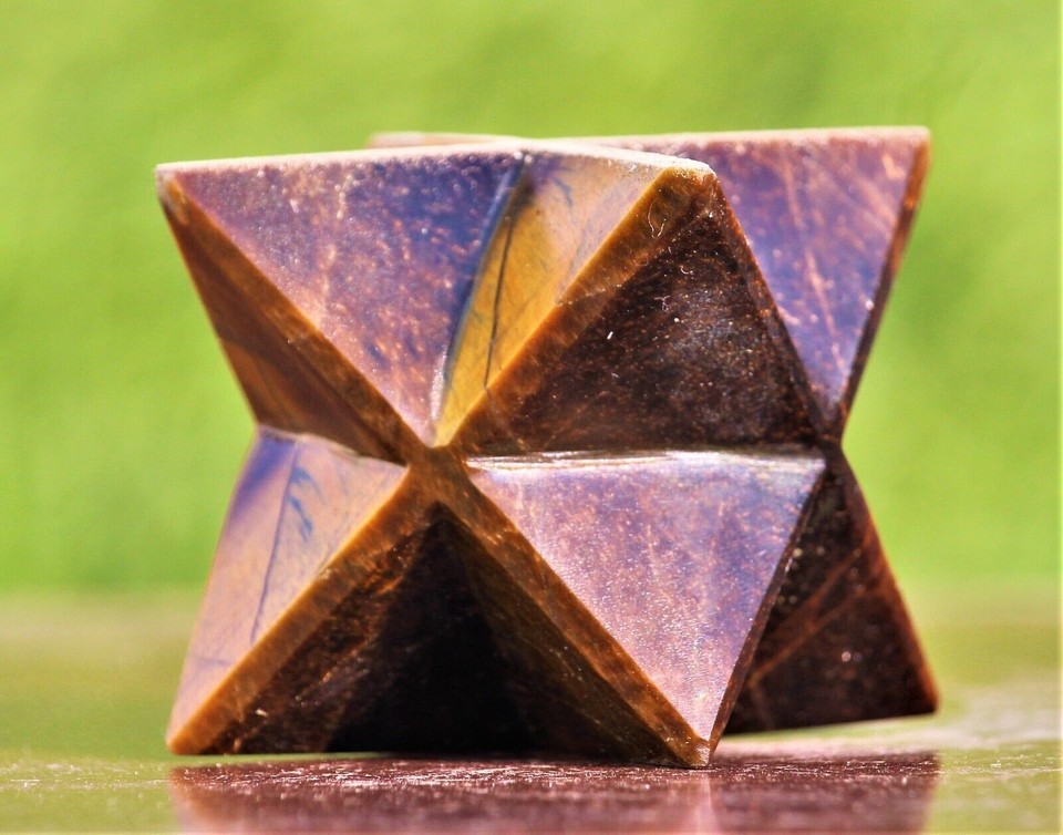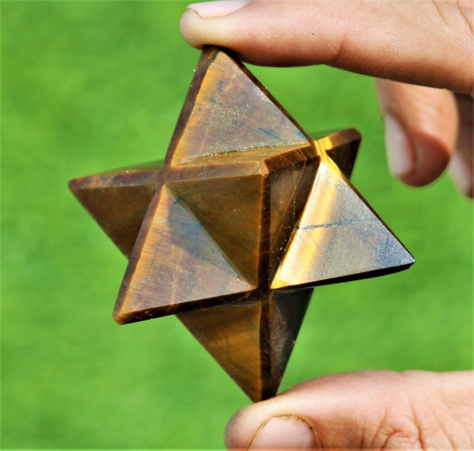 Beautiful 55MM Natural Polished Tiger Eye Crystal Healing Stone 8 Points Merkaba Star Tetrahedrone For Healing, Fengshui, Reiki, Aura, Meditation, Metaphysical, Decoration and Minerals Specimen.