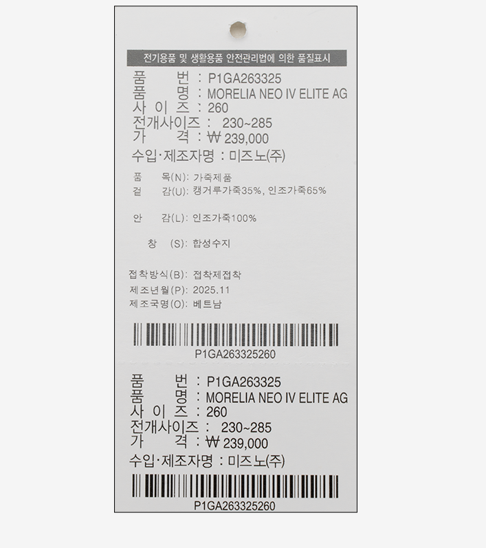 Kangaroo Leather 35%, Artificial Leather 65% |