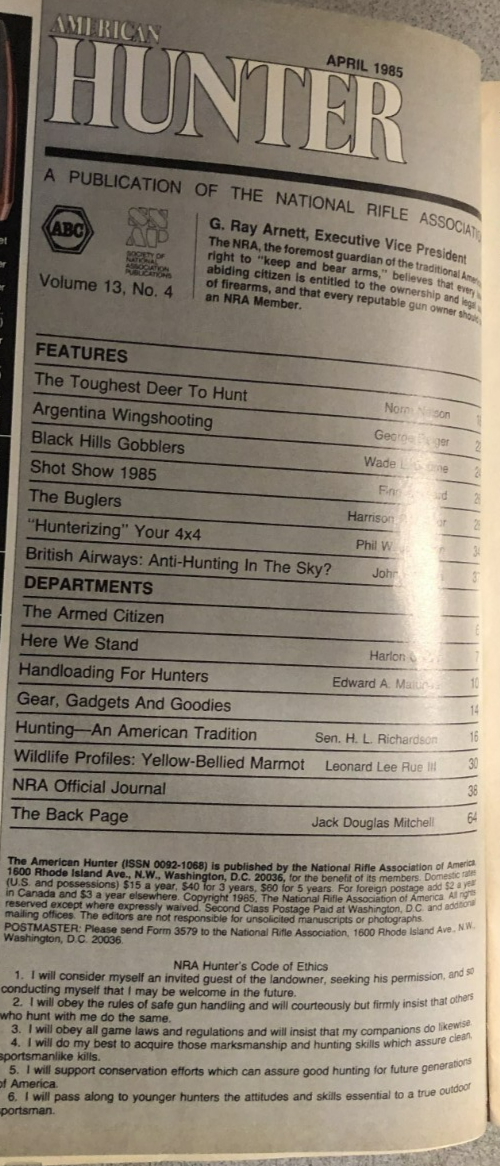 AMERICAN HUNTER magazine April 1985 Ronald Reagan cover FREE U.S. shipping!
