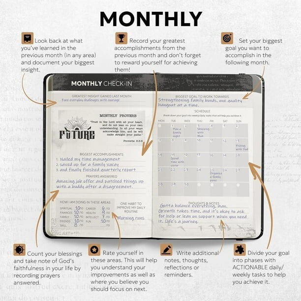 Prazoli Leather Christian Bible Prayer Journal For Men - Study Scripture Notebook Planner Daily Devotional Undated | Religious Jesus Faith Gifts for Graduation, Pastor Baptism Church, Cross