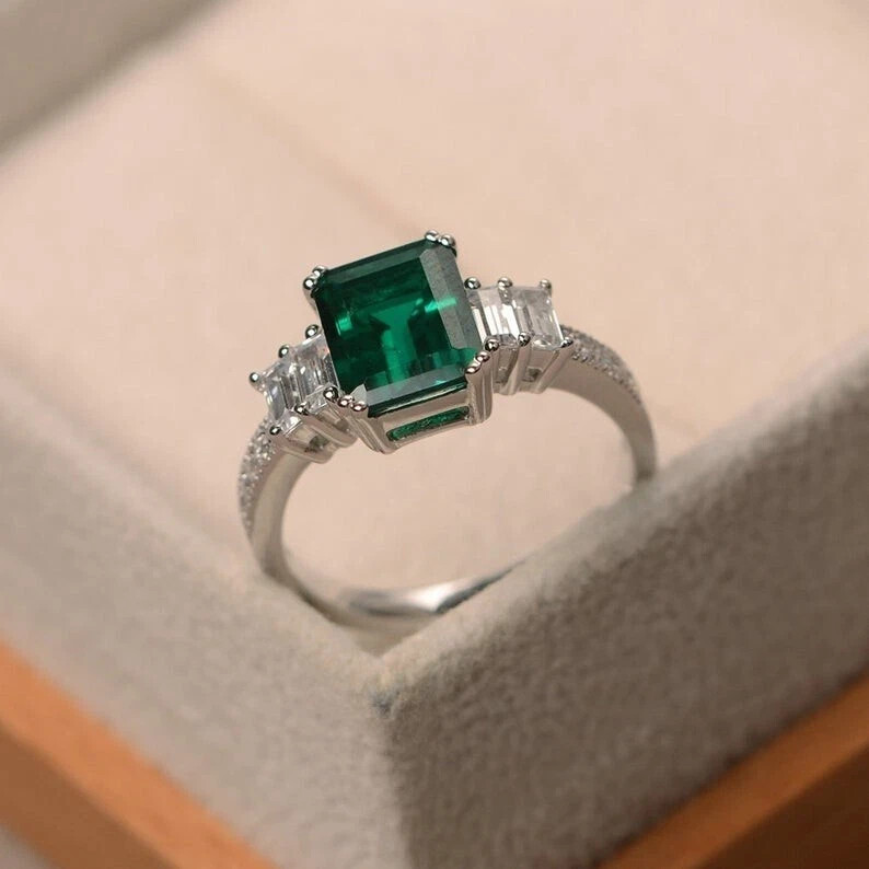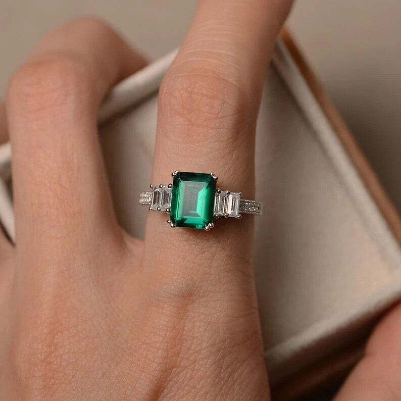 3.50 Ct Natural Emerald Diamond Wedding Ring 14K Solid White Gold Plated Rings 7