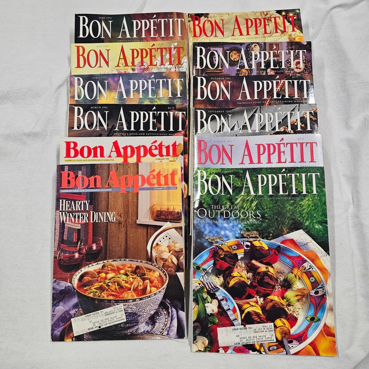 Bon Appetit Magazine Lot 1991 Full Year Jan-Dec 12 Issues Vintage Cooking
