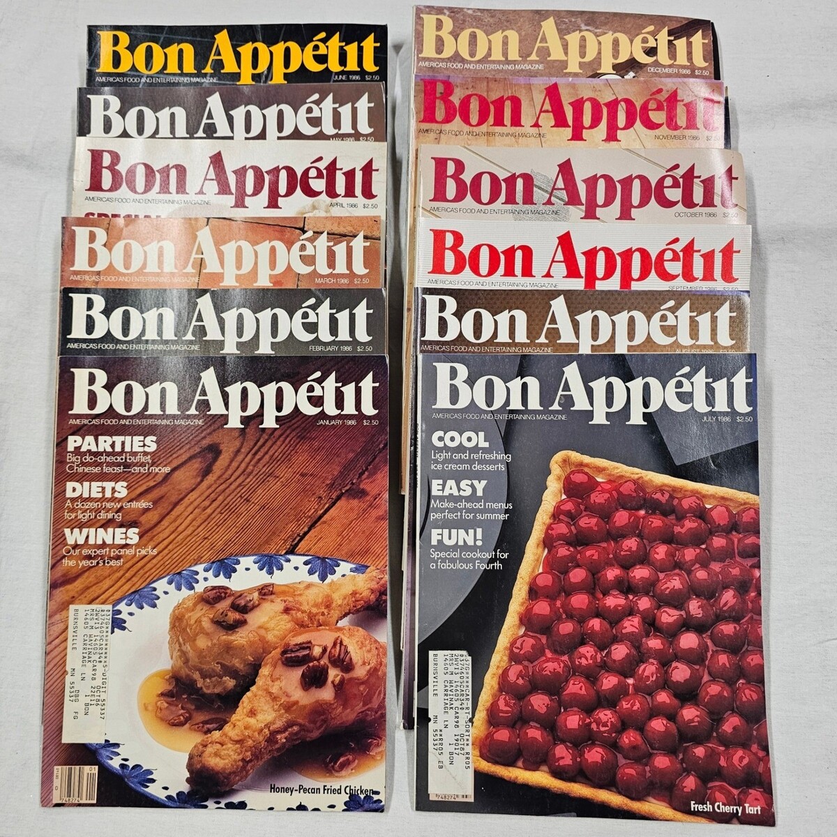Vintage Bon Appetit Magazine Lot 1986 Full Year Jan-Dec 12 Issues Retro Cooking