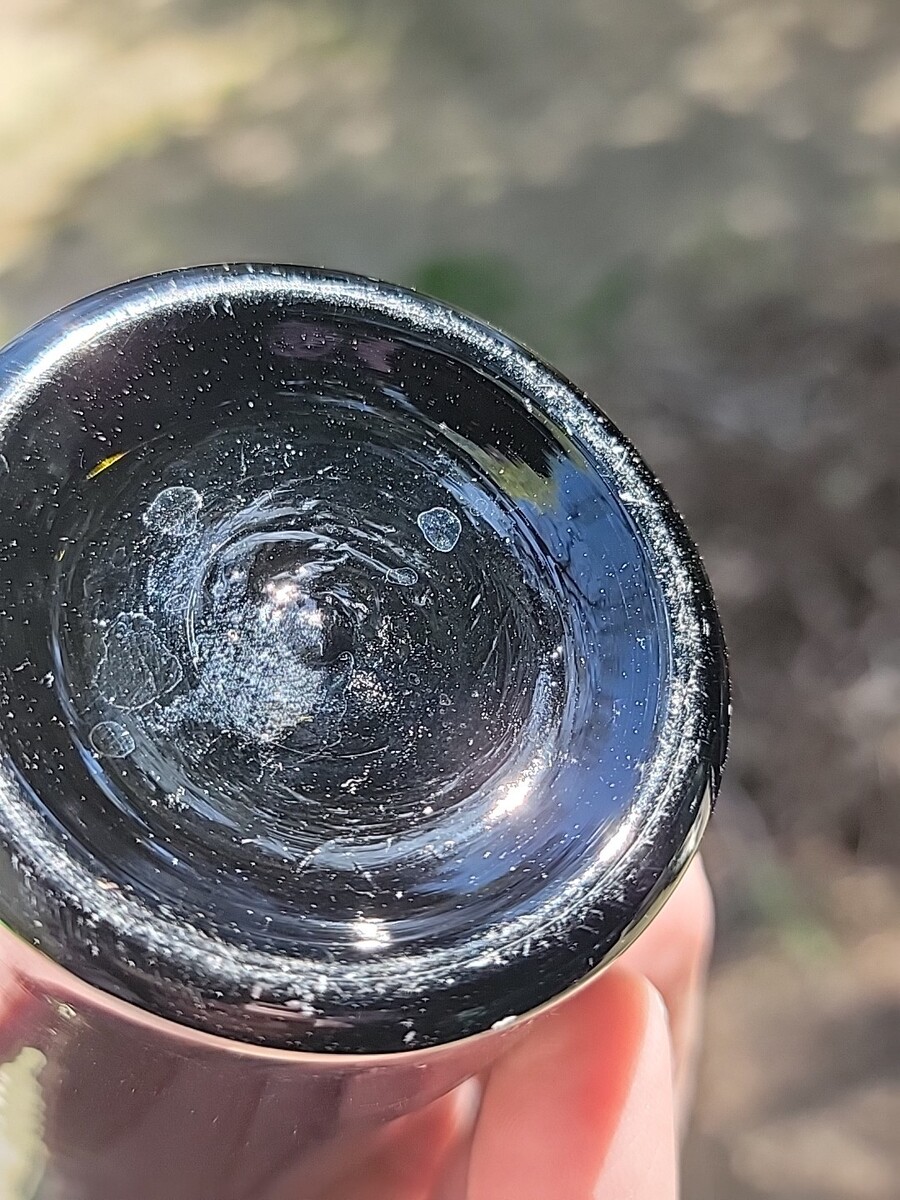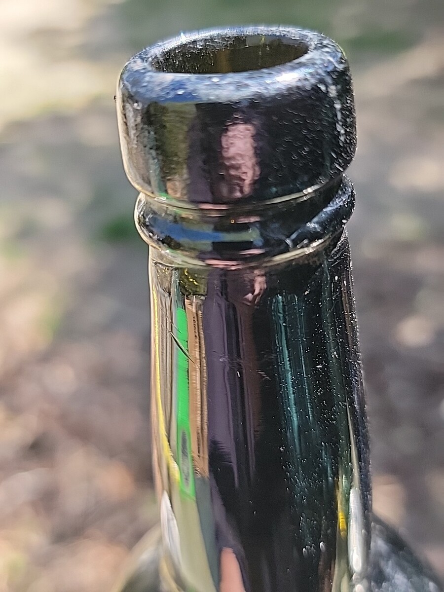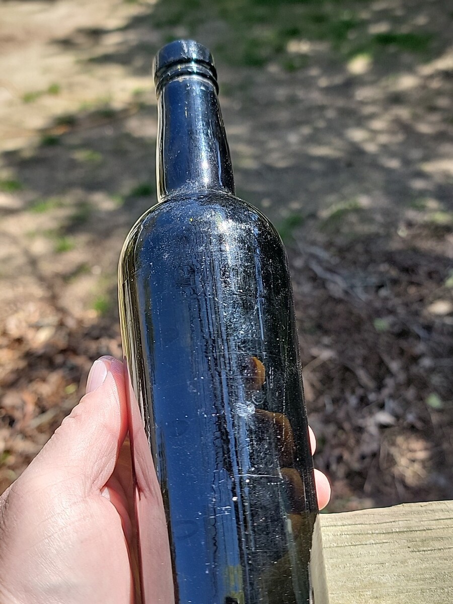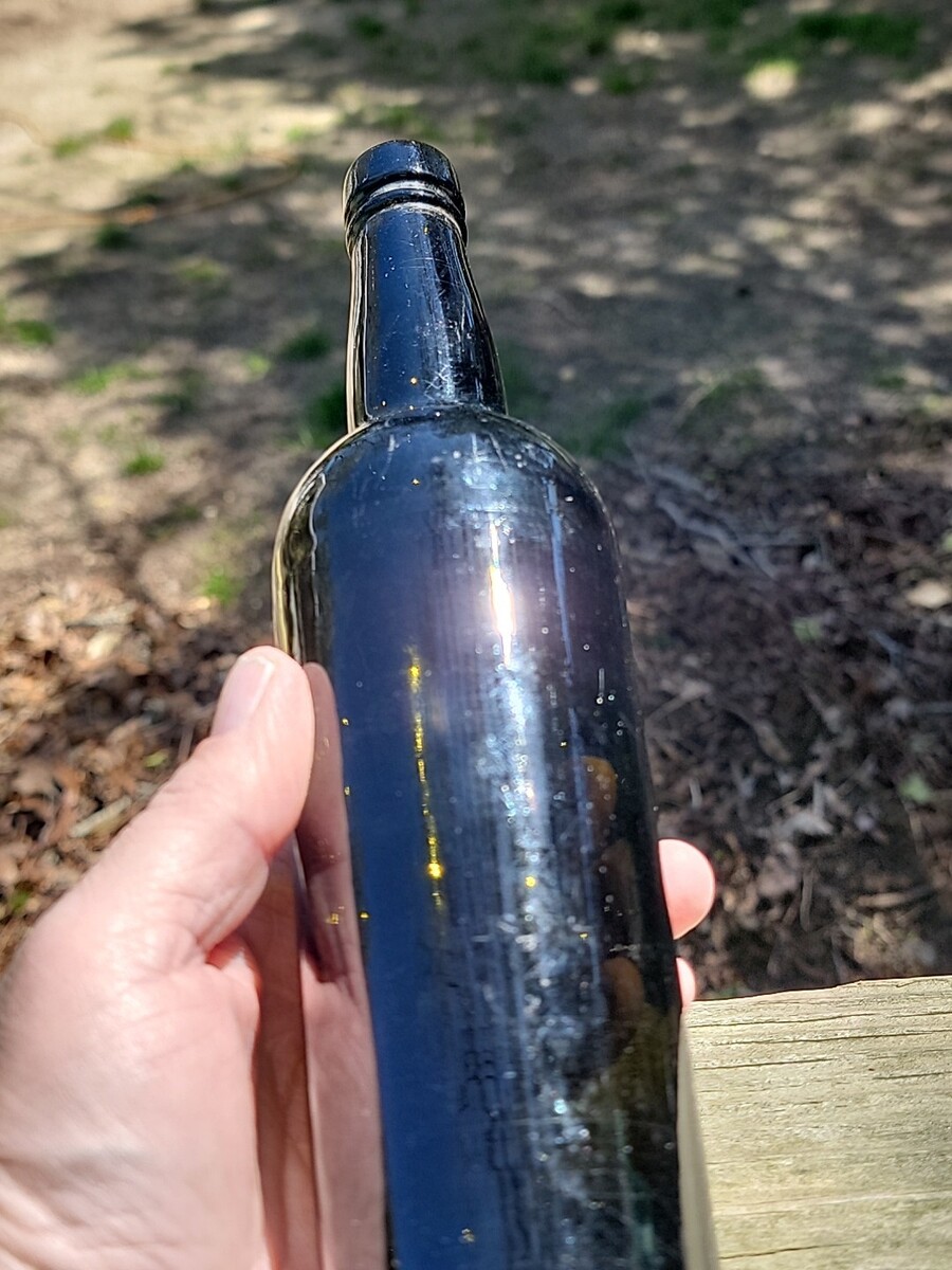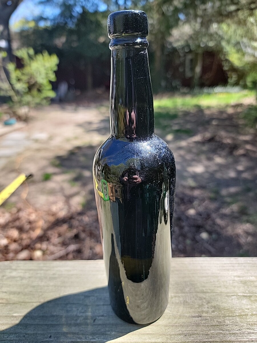 RARE! 1809-1880 Three Piece Blown Molded Bottle with Tooled Top Black Glass