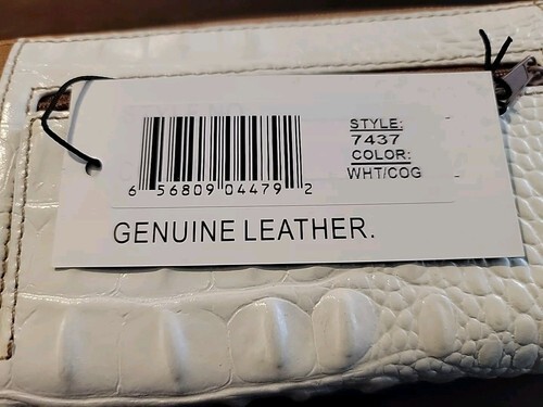 Madi Claire: Embossed Croc White Leather Purse. New