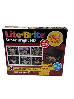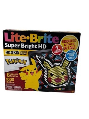 The Lite Brite Super Bright HD Pokemon Edition is a brand new toy featuring a light-up screen with Pikachu designs. This version of Lite Brite is specifically designed for kids aged 6 and up, with a focus on the popular Pokemon character family. The high-definition colors and bright display make it a fun and engaging toy for children to play with, providing hours of entertainment and creativity. Made in China, this 2023 edition is sure to be a hit among young Pokemon fans.
