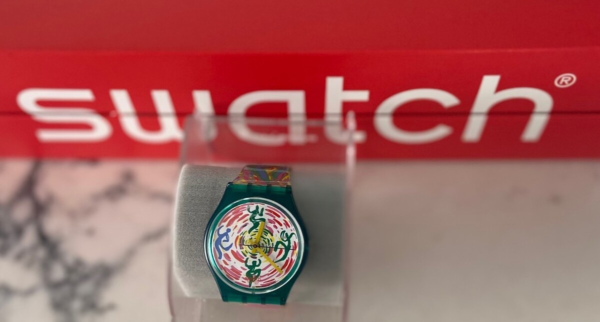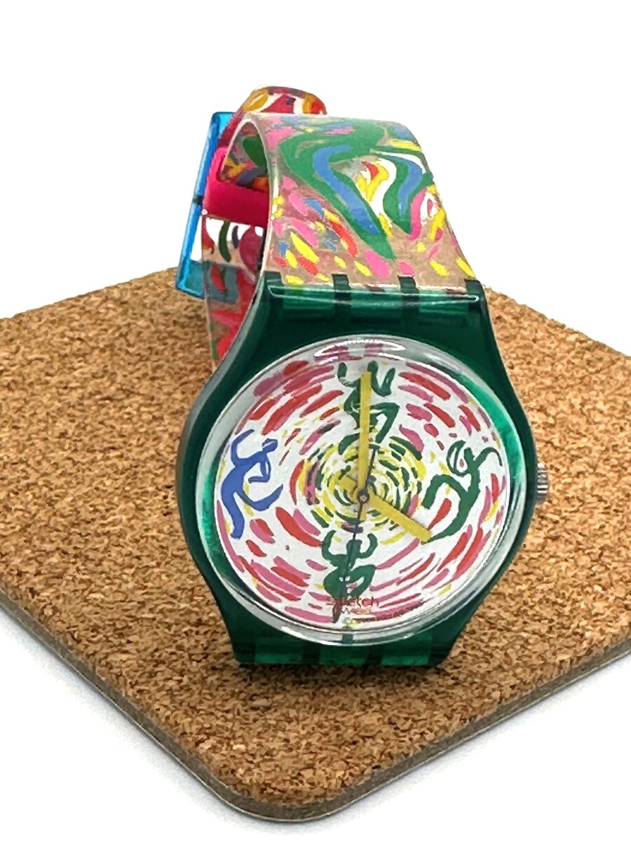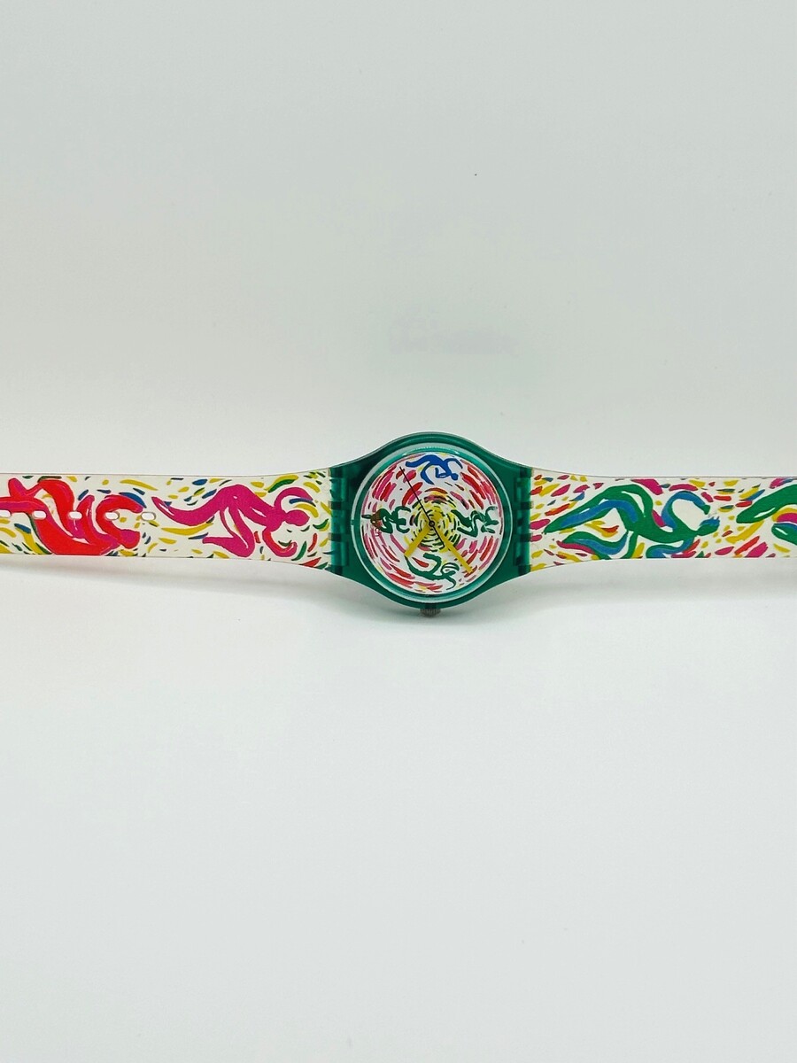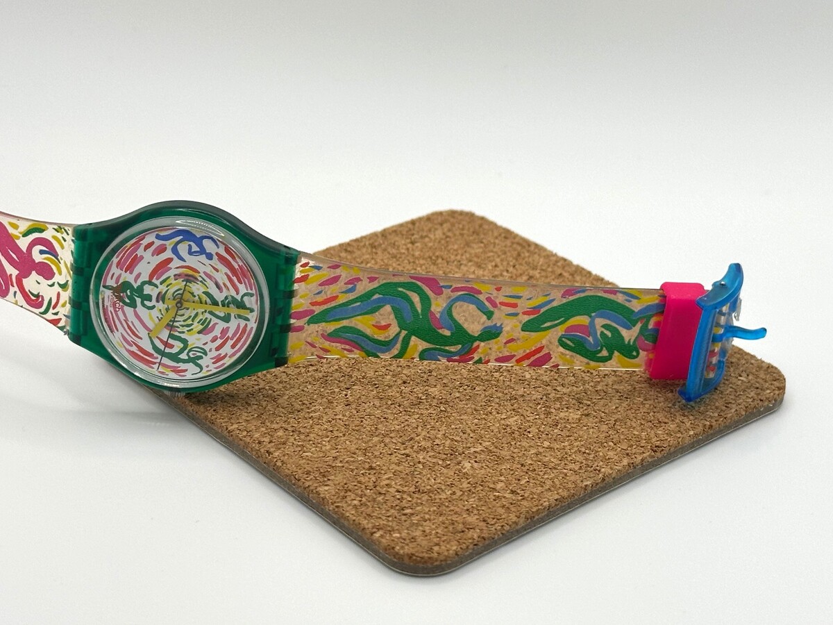 Stand out with brush-stroke madness: Grab this vintage pre-loved Swatch Watch Girotondo – it’s like wearing art with a burst of color on your wrist.