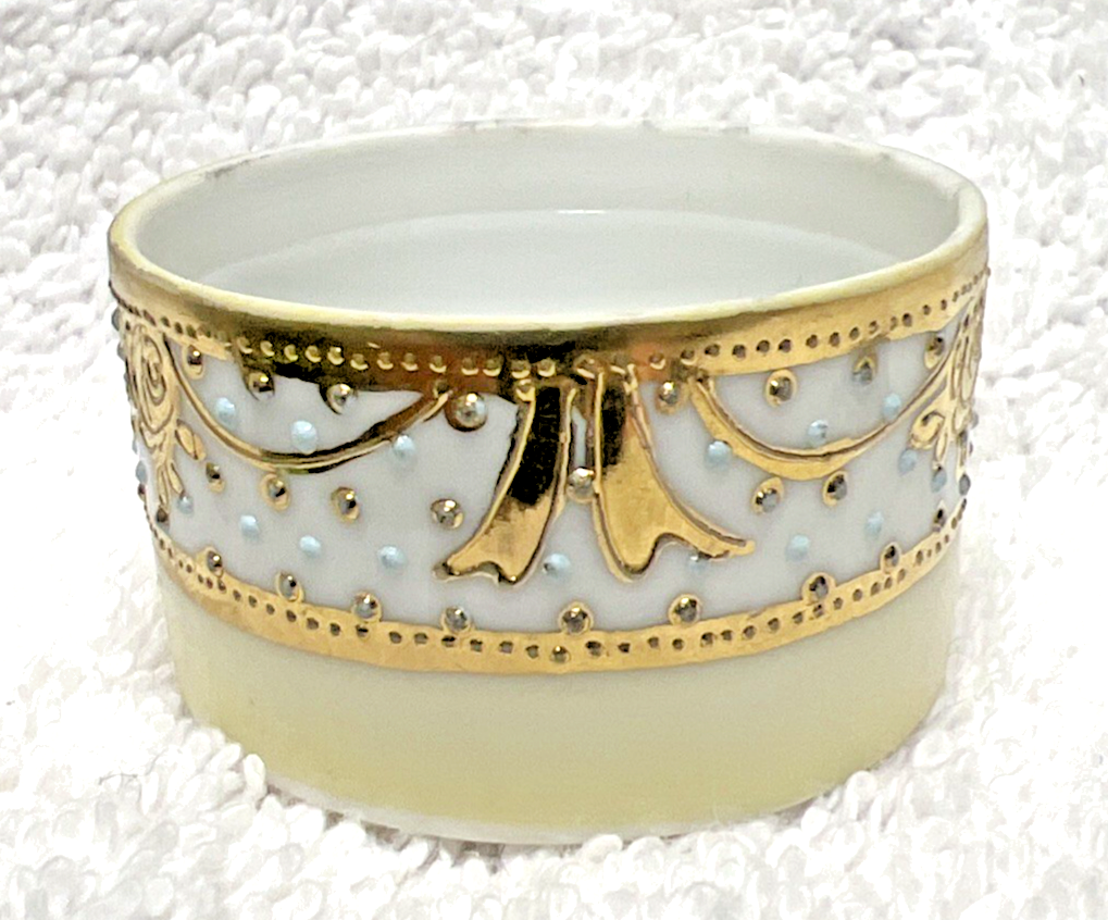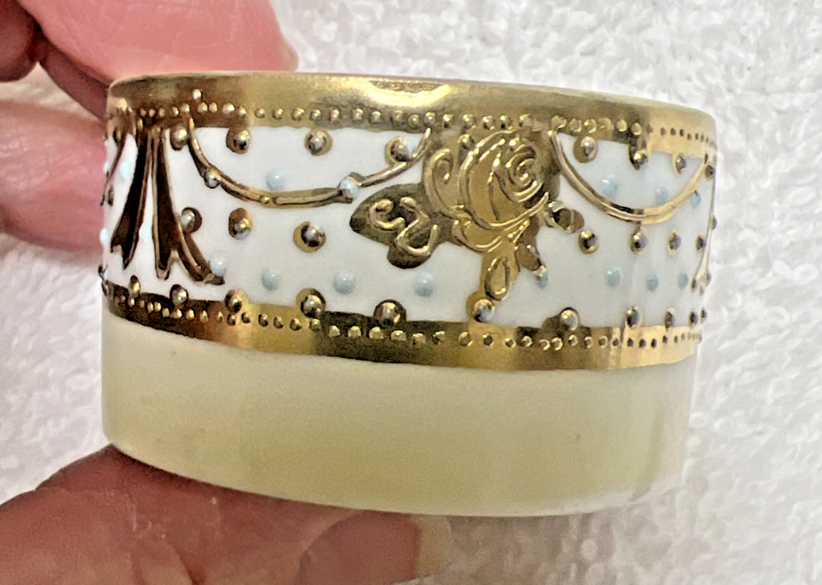 Vintage Nippon Hand Painted Porcelain Gold Floral Moriage Open Salt Cellar Dip