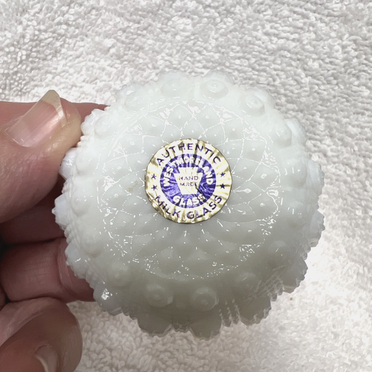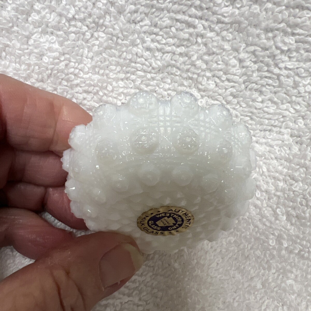 Vintage Westmoreland Lacy Daisy Milk Glass Open Salt Cellar Dip Sticker Tag