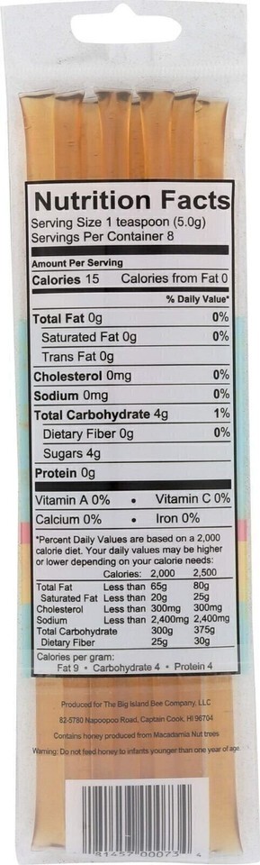 , enjoy the taste of paradise in every stick. This pure Hawaiian honey is naturally sweet and nutty with a smooth, velvety texture that captures the flavor of the islands.