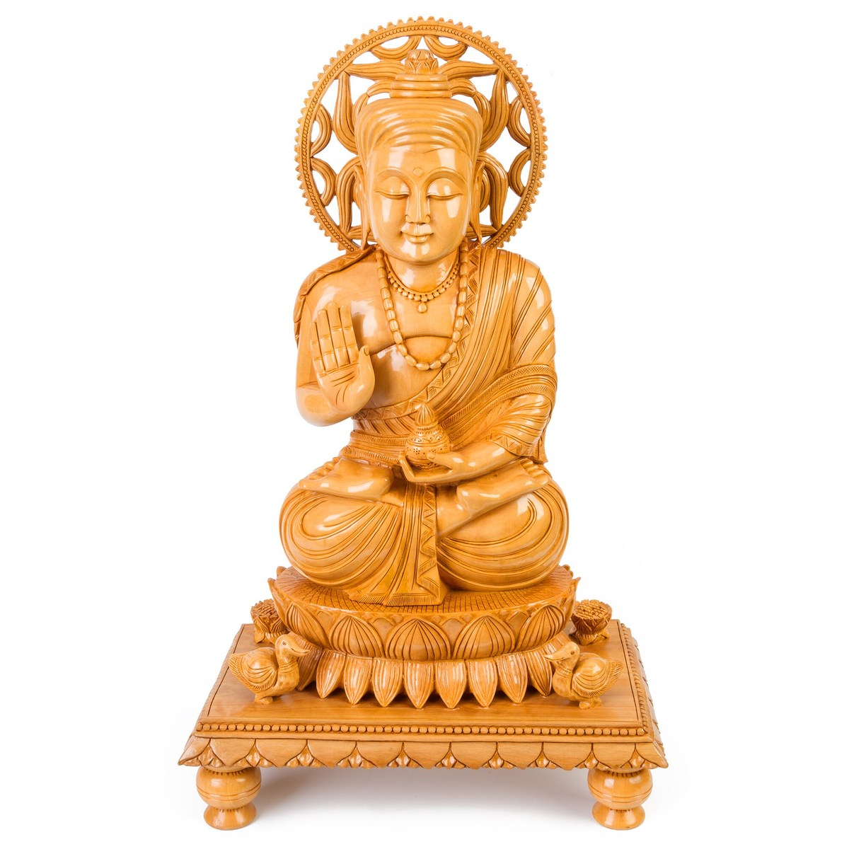 Amazing quality hand-carved Buddha statue made of special white Kadamb wood from the South of India.