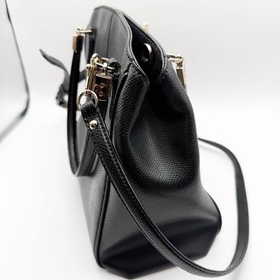 Coach Minetta Crossgrain Leather Black Satchel Crossbody Bag Handbag F34663