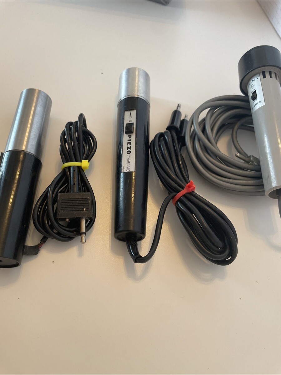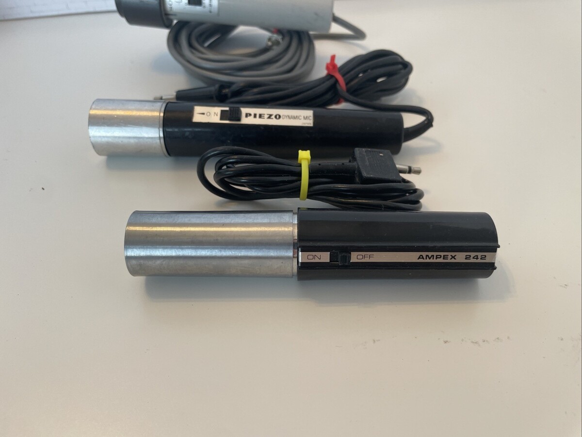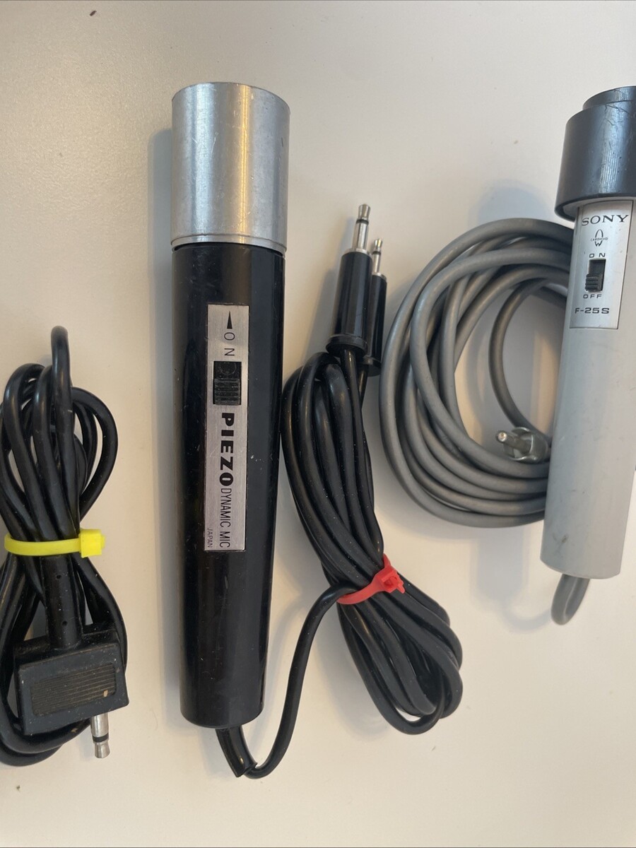LOT OF 3 Vintage Corded Microphones. Sony F-25S, Piezo Dynamic , Ampex 242