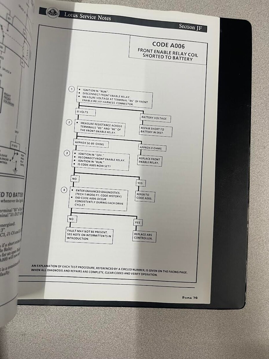 Lotus Auto USA Formazione Course Notes Esprit 91 My Frenata Sistema Delco