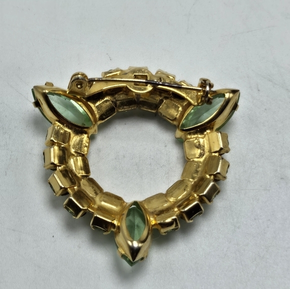 50's Gold Tone Brooch Green Rhinestone Metal and 49 similar items