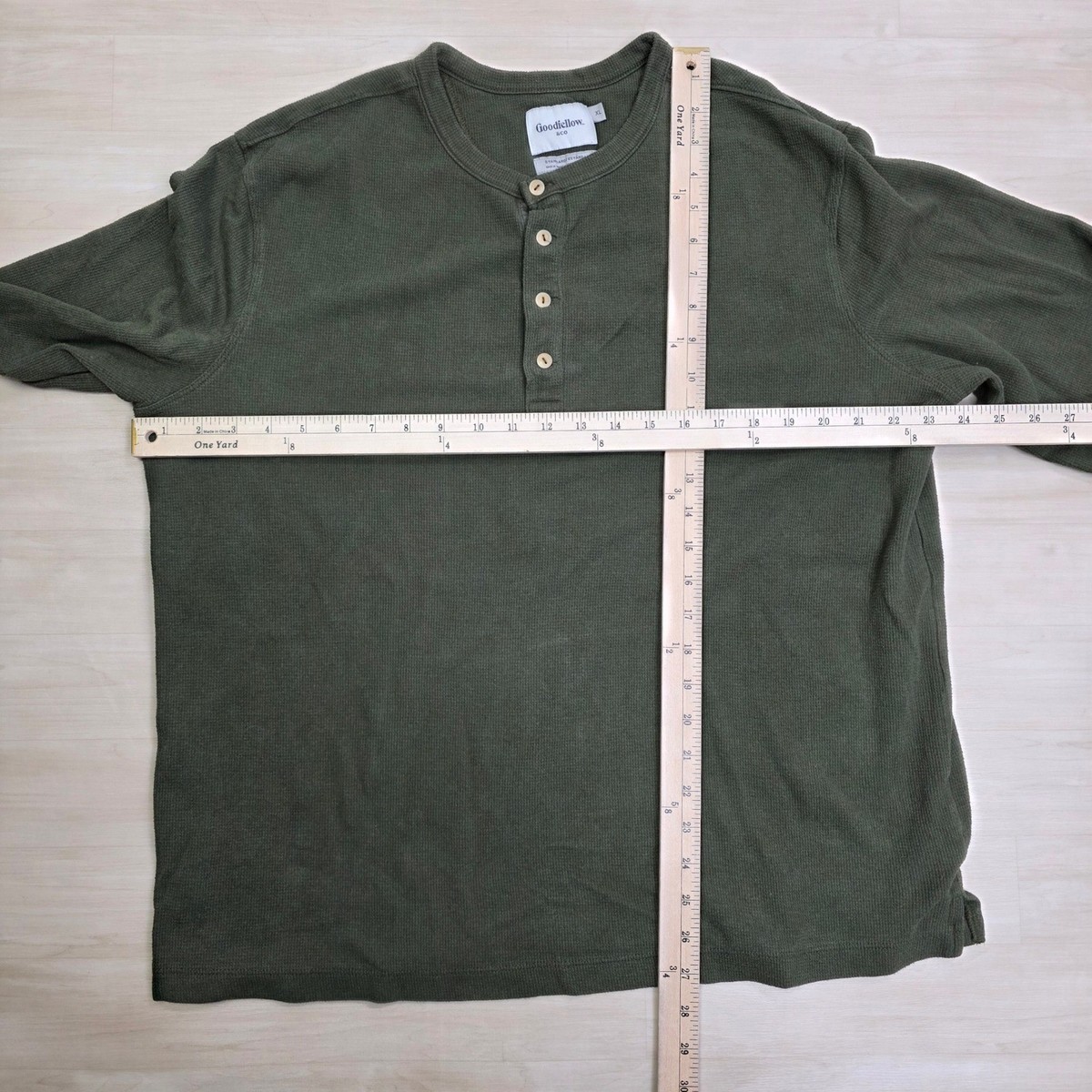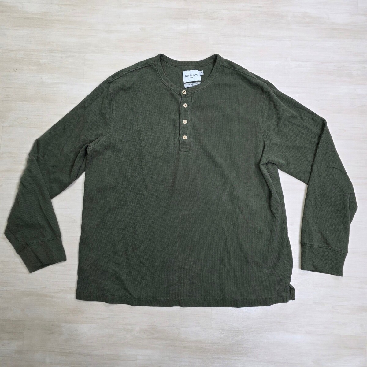 Goodfellow & Co Mens XL Olive Green Waffle Knit Thermal Henley Long Sleeve Shirt