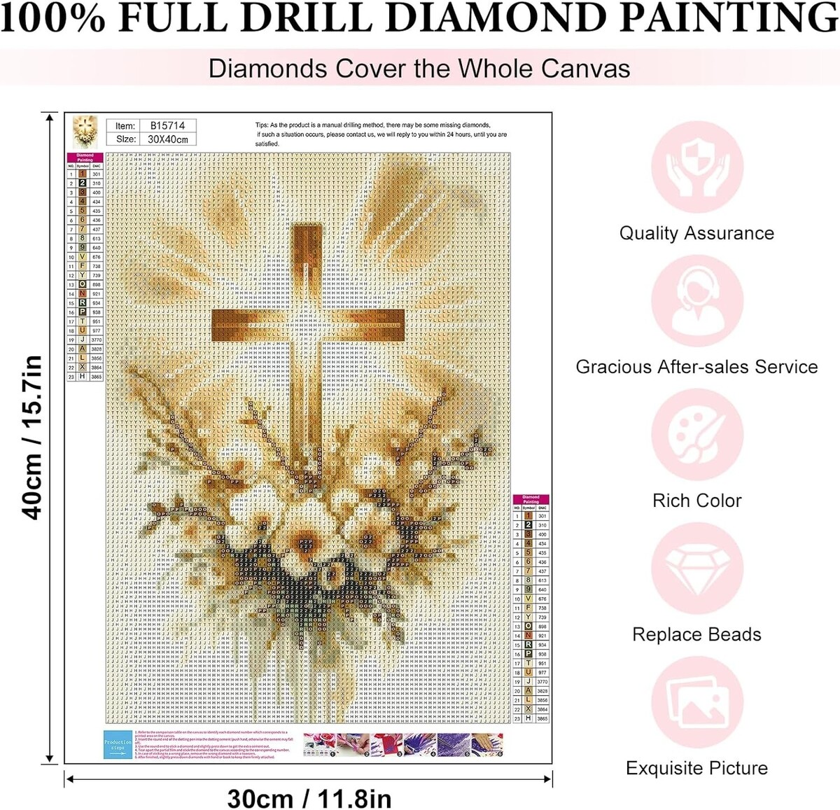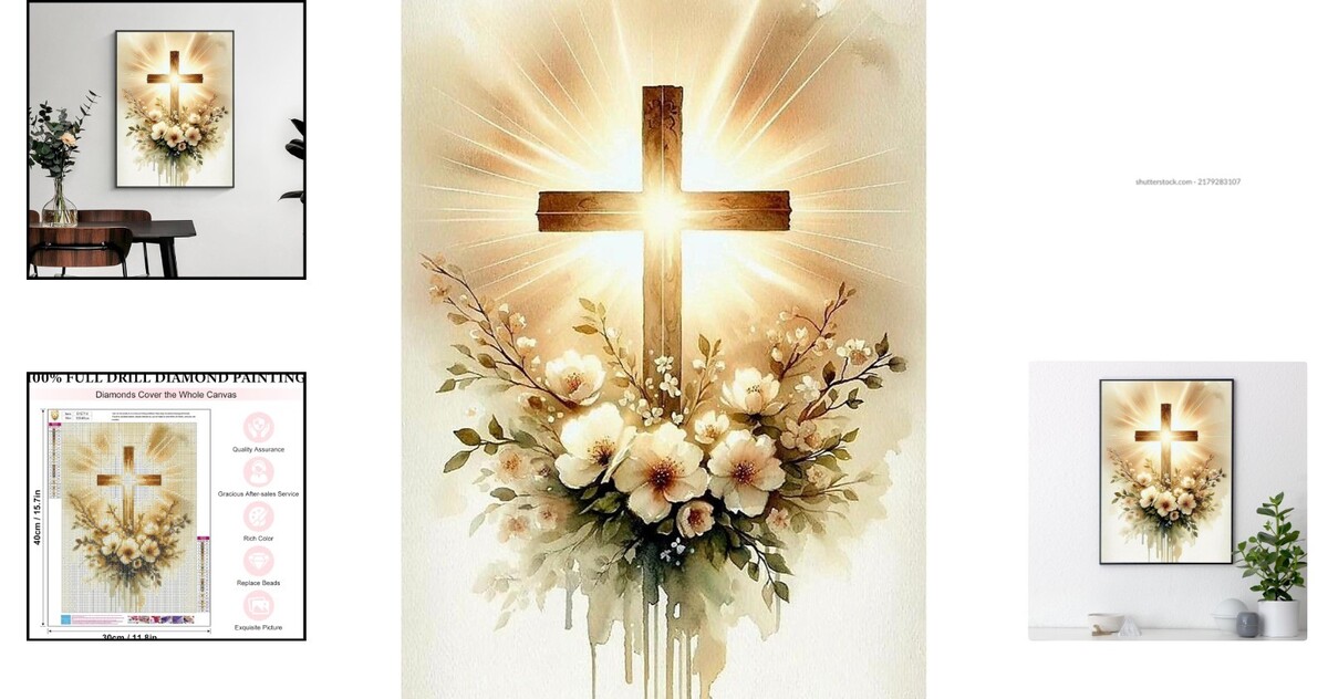 Religious Cross Diamond Art Craft Kit - Perfect Gift for Art Lovers - 12x16 inch
