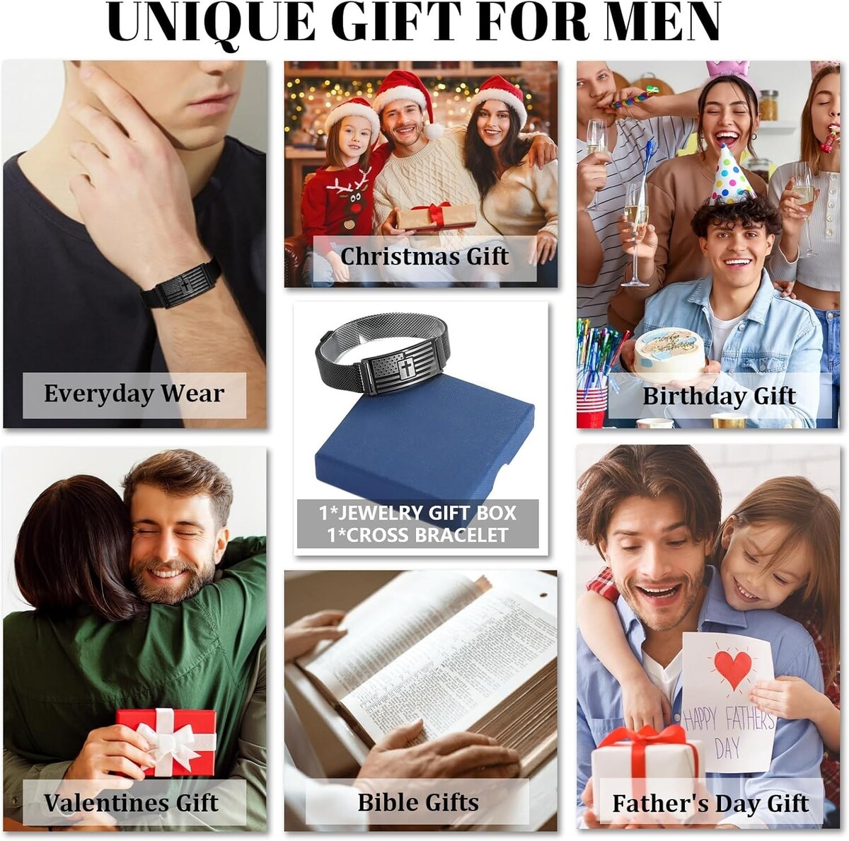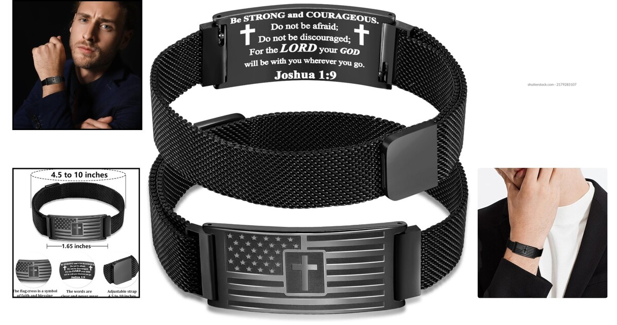 Stainless Steel American Flag Cross Bracelet with Verses - Perfect Gift for Him