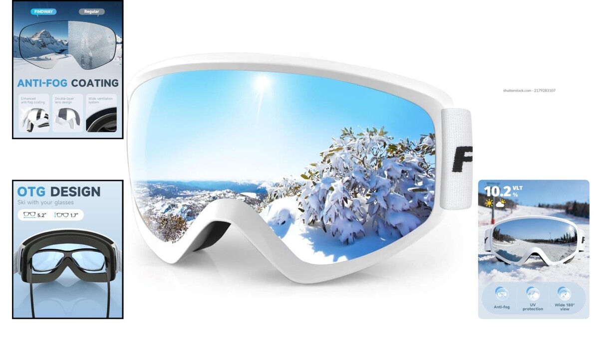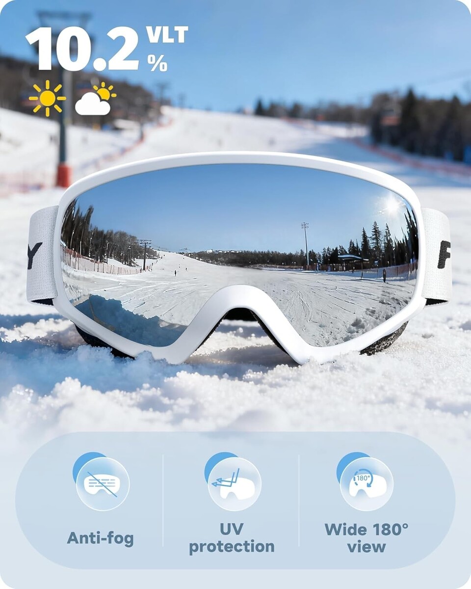 Kids Ski Goggles Over Glasses Design - Anti-Fog UV Protection for Ages 5-16